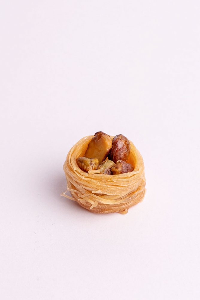 A gift box weighing around 450g of Ich el Bilbol. Ingredients: Pistachio, wheat flour, sugar, sugar syrup, starch, animal ghee, water, salt, antioxidant (E321)