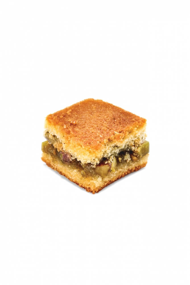 Ingredients: Pistachios, Sugar, animal ghee, semolina, water, wheat flour, cashew, wheat starch, rose water, glucose syrup, vegetable ghee (coconut), almond paste (sugar, almond, glucose syrup, stabilizer: glycerol, bitter almonds, stabilizer: sorbitol), whole milk powder, corn starch, butter, salt, corn oil, dough improver (wheat flour, emulsifier (E472e), flour treatment agent (E300)), yeast, baking powder, potash alum, antioxidant (E321