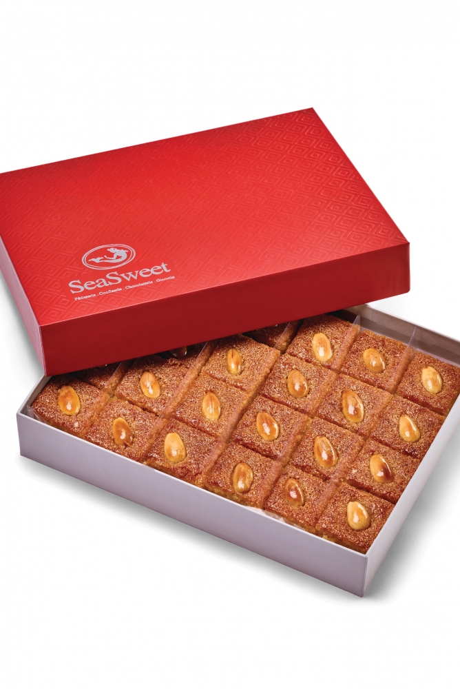 Ingredients: Sugar syrup, semolina, sugar, milk, coconut, animal ghee, tahina, almond, yeast, starch, sodium bicarbonate